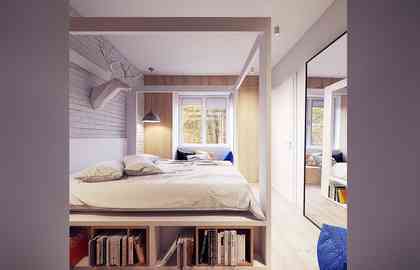 支招:小户型收纳是必要的,但是大面积的壁柜主让空间狭小起来,如果家里东西不多,完全没必要做壁柜。喜欢的话,可以在墙上适当地打一些小隔板,摆放些相框、工艺品之类的装饰品。